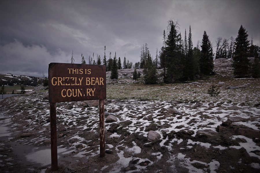 Warning sign on the Beartooth Highway, Wyoming.