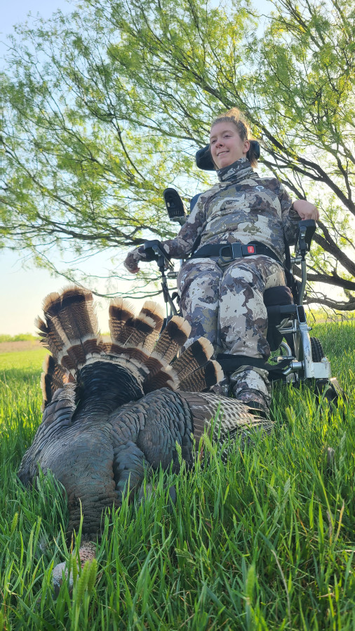 My disabled daughter Kenzi with her Texas Rio, with her using a vacuum air actuator to fire the shotgun and dad helping her with the vacuum tube and safety while our friend Macey aimed the shotgun. That feeling of overcoming obstacles and circumstances can help heal a soul (maybe more than just the hunter's).