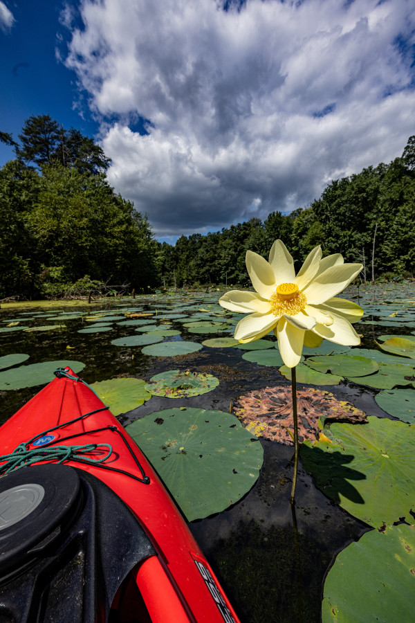 A hidden cove filled with Lotus Lillies only accessible by kayak or canoe