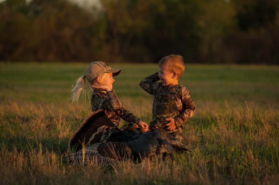 No baby sitter, no problem! Little brother can run and gun with us. 3 year old, Lee, was so proud of his big sis, Emery, for getting on a turkey!